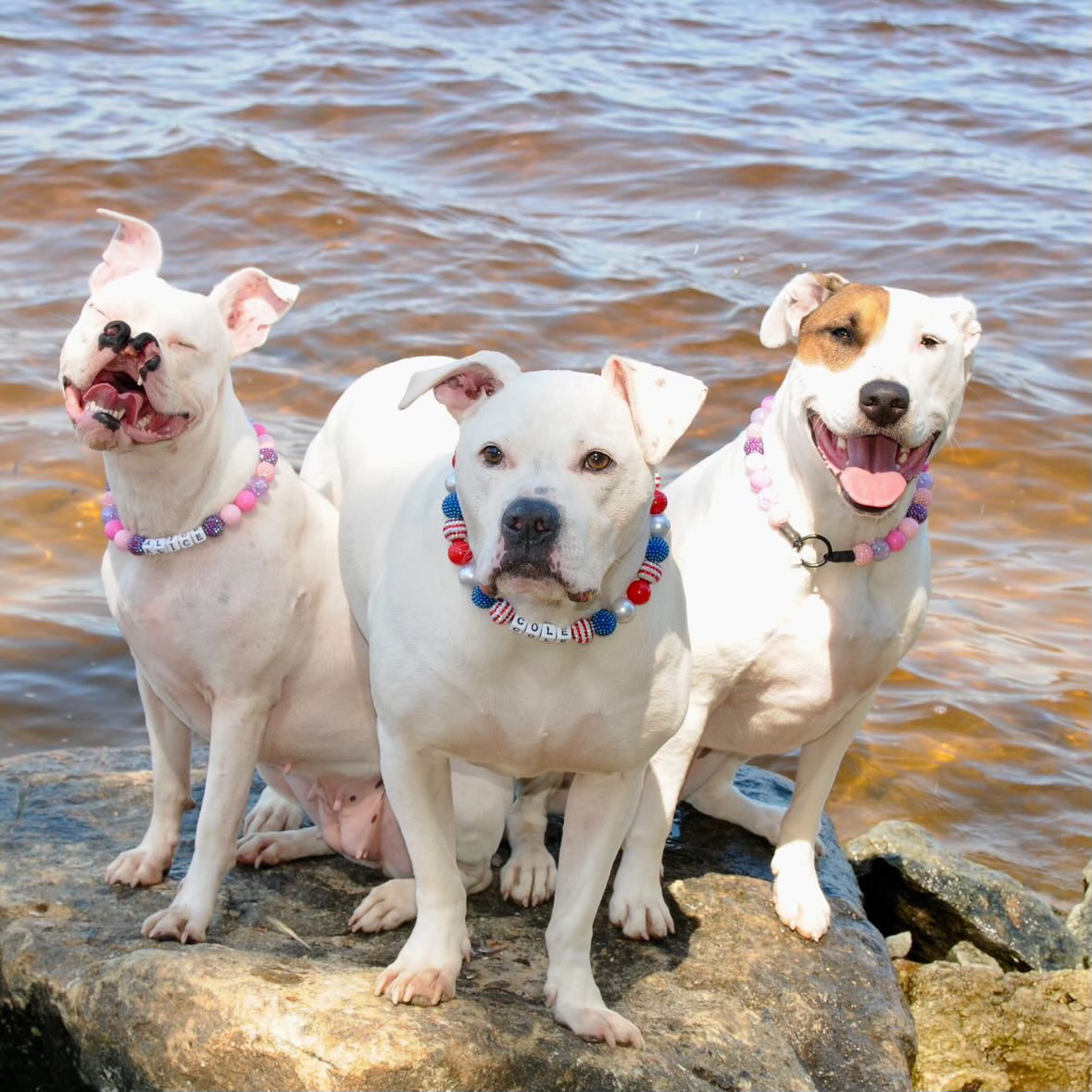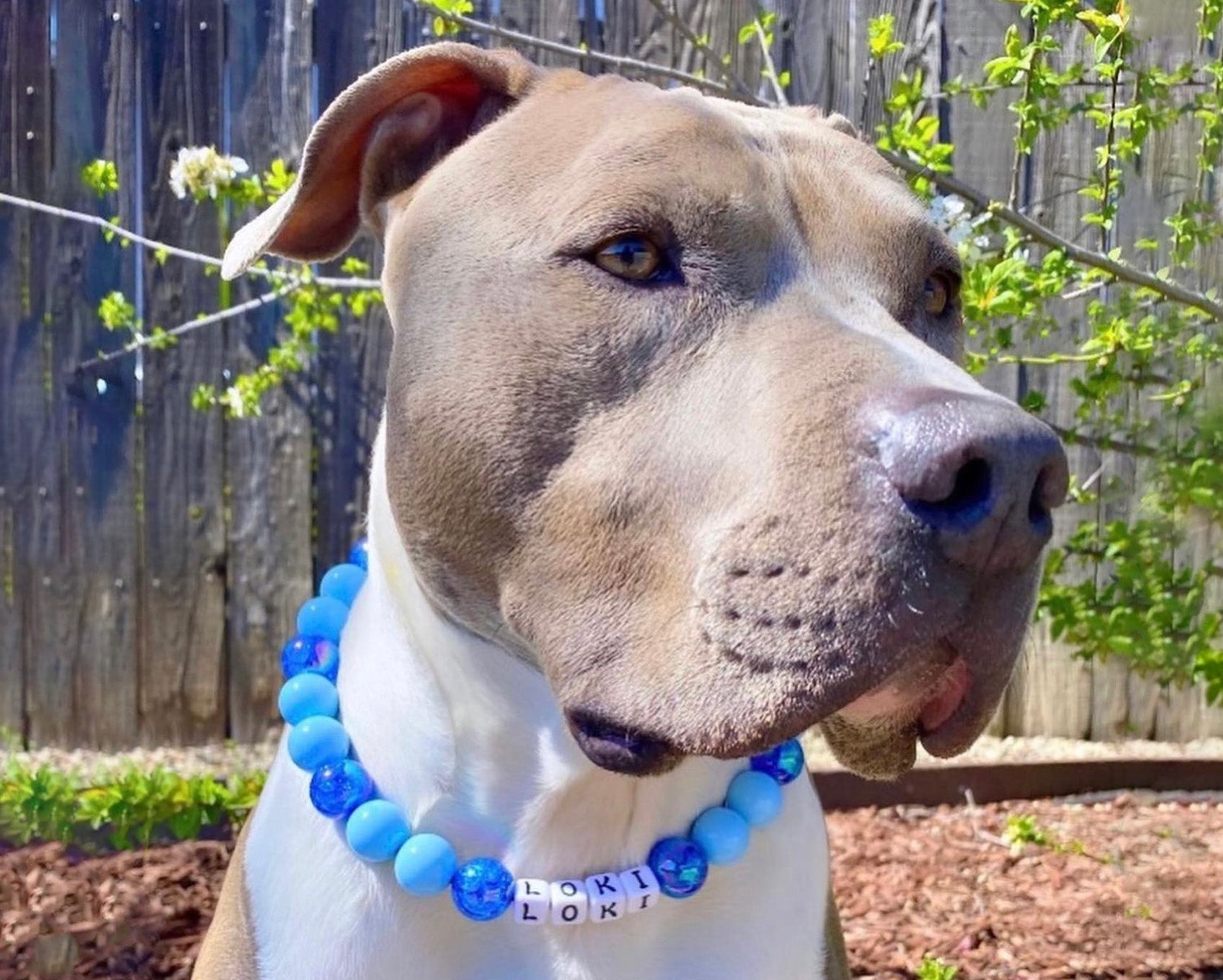 Whether you're looking for glitz and glam or rustic, our durable acrylic beads can take a beating. They come in a variety of styles (rhinestone, resin, crackle, wood, pearl) so each collar stands out. All beaded dog collars can be made with or without your dogs name!