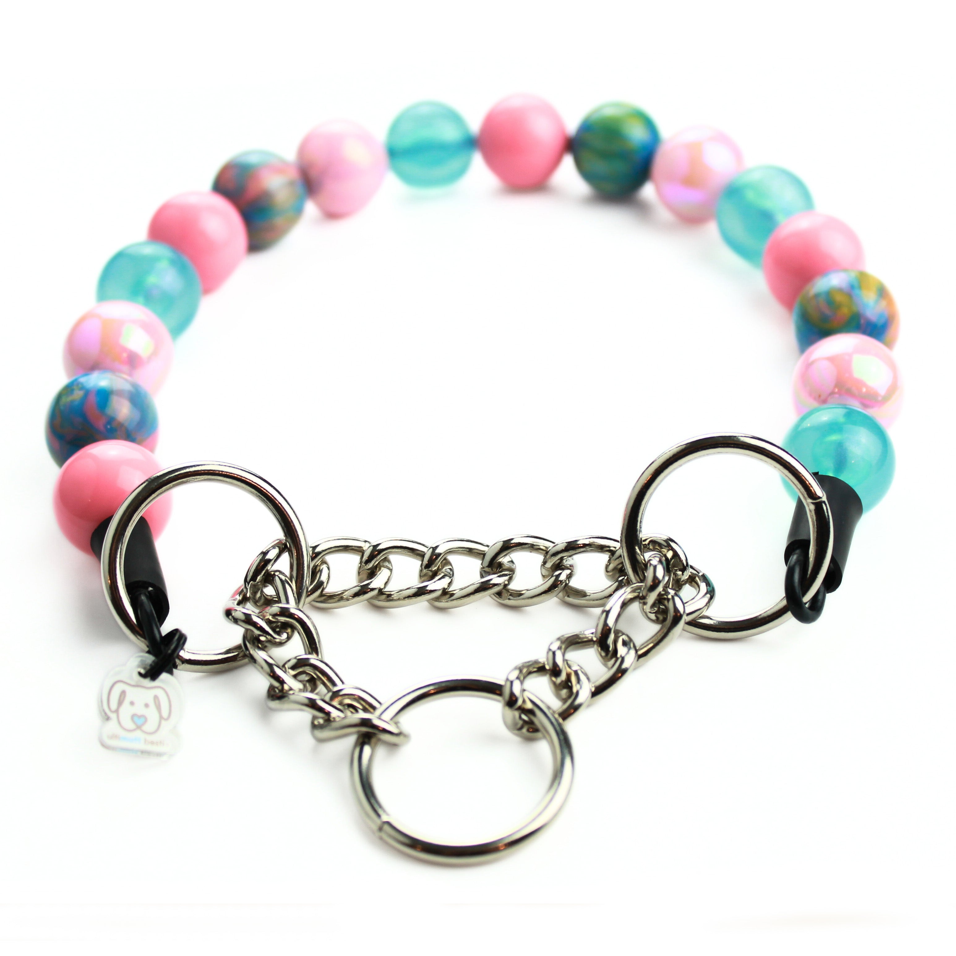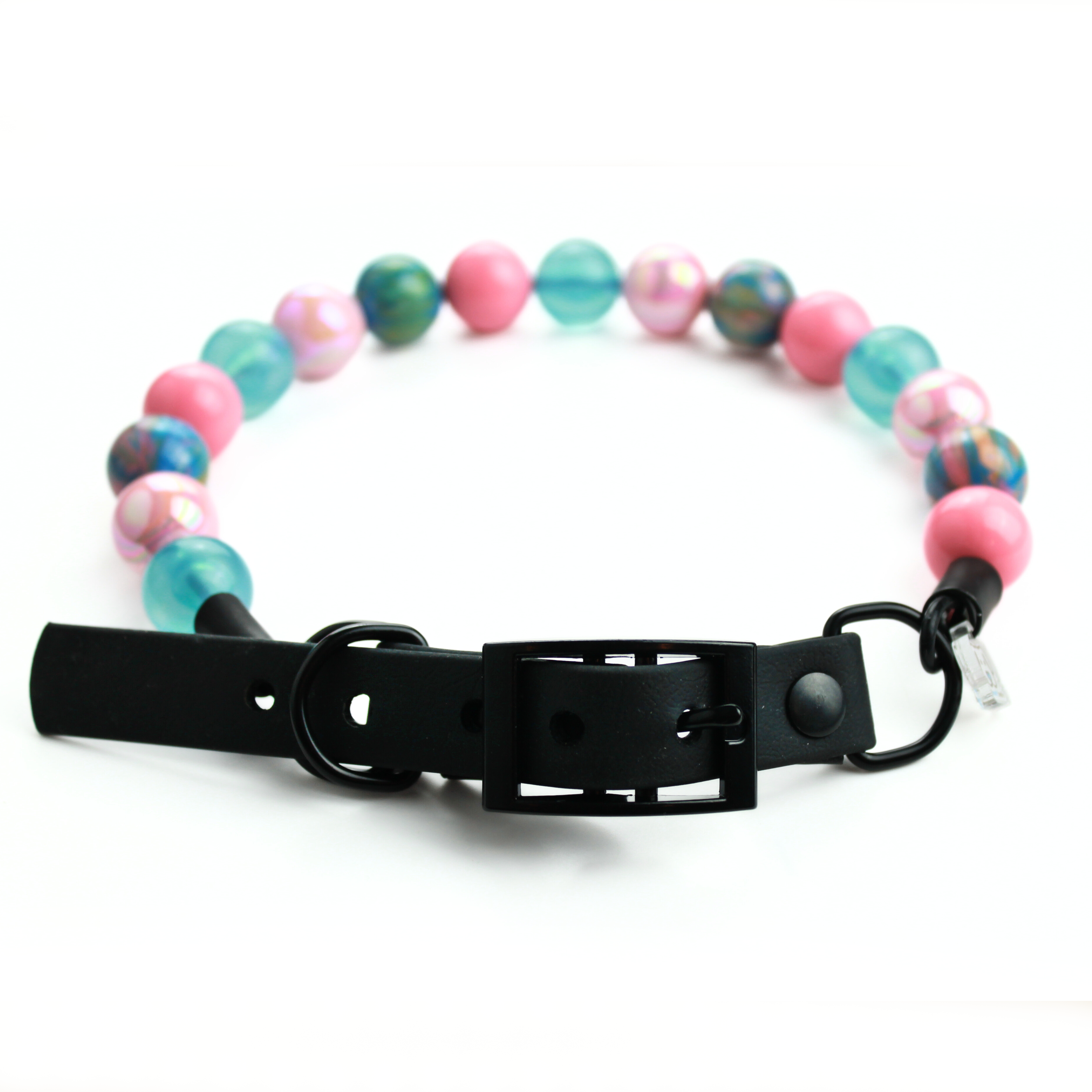 Large bubblegum beads come in a variety of types and finishes. Each collar can be made with a unique name or phrase. These collars can fit any style!