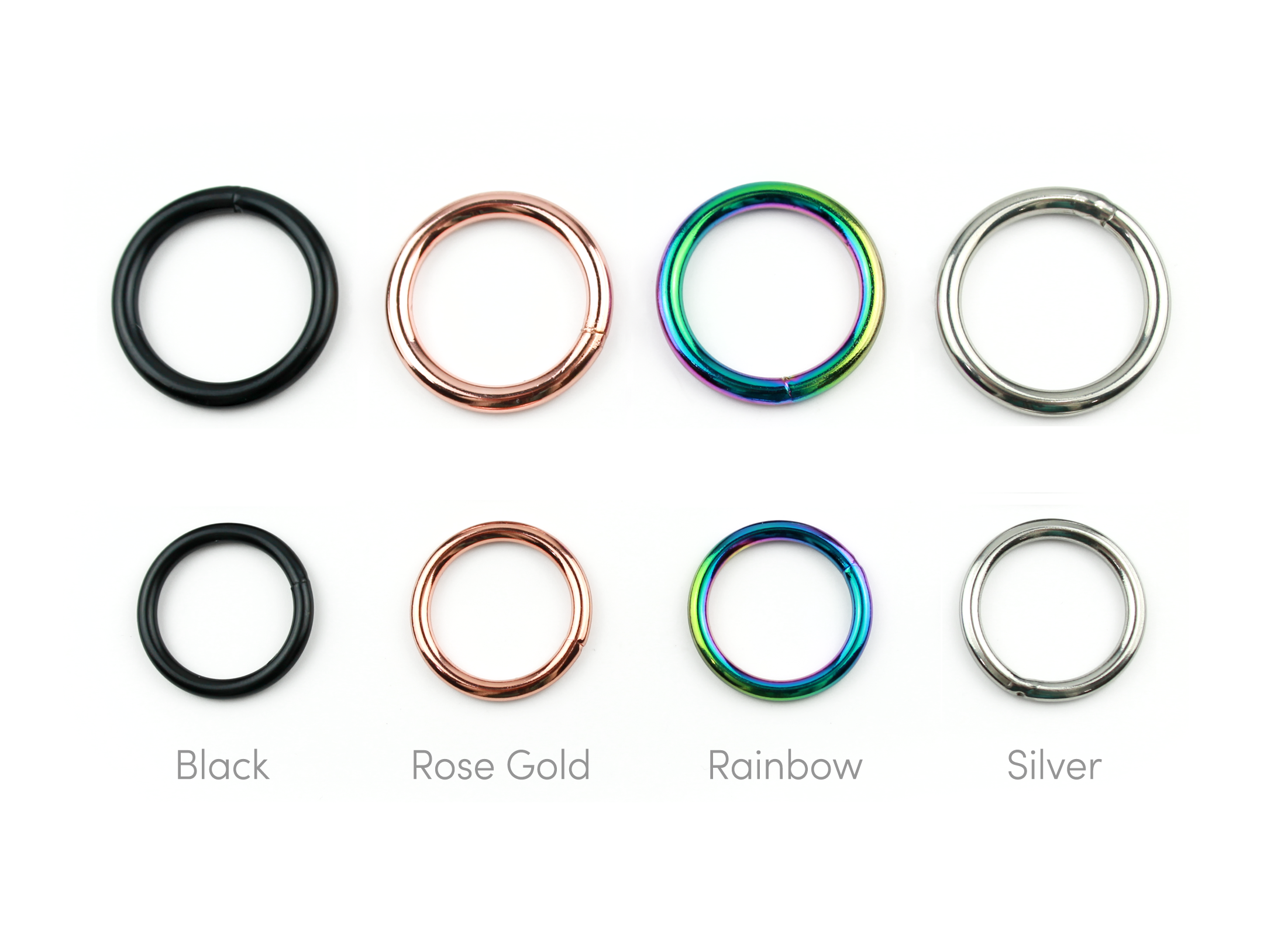 O-Rigs come in Black, Rose Gold, Rainbow, or Silver. All o-rings are available for both large bead AND small bead collars. (O-ring available at size 11"+ for small collars)