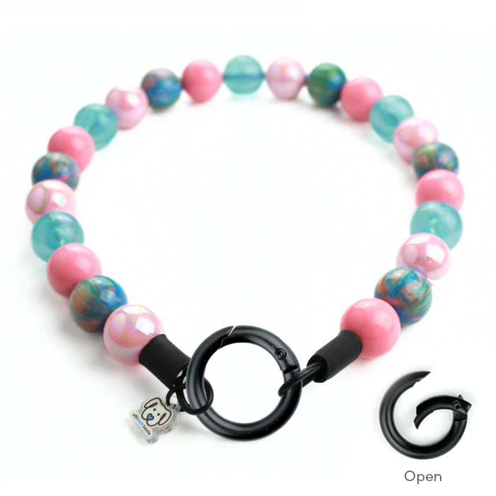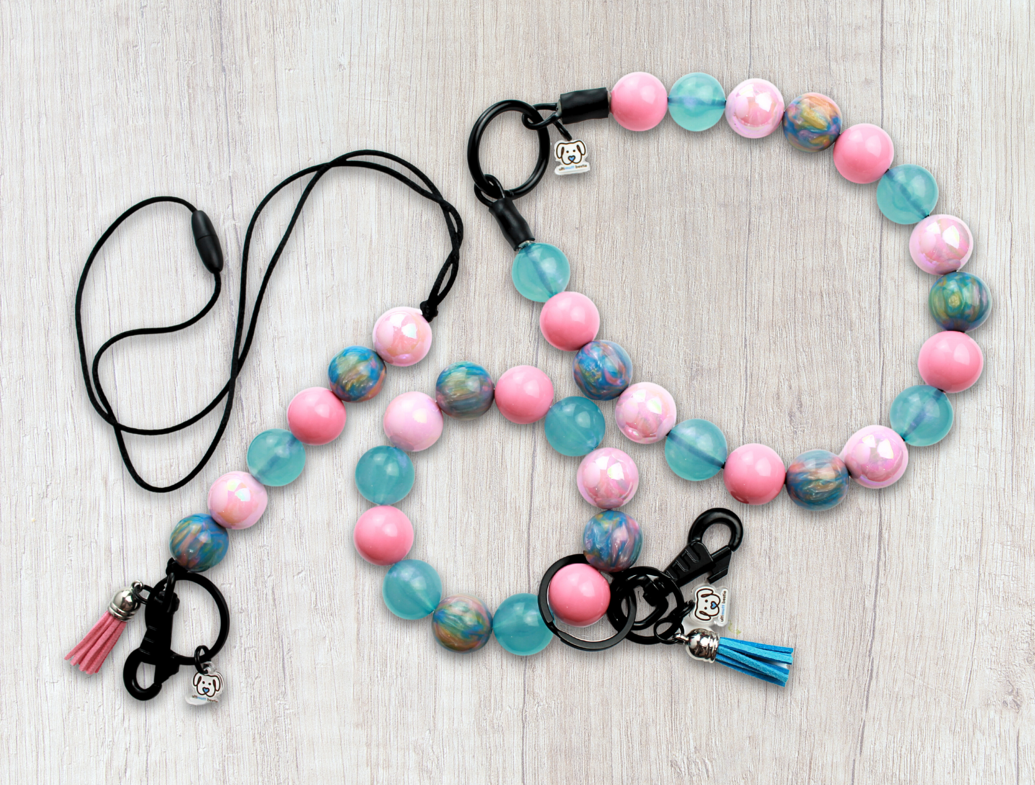 Keychain wristlets are strung with latex-free, 22lb test stretchy cord. Perfect for holding keys or poo bags!
