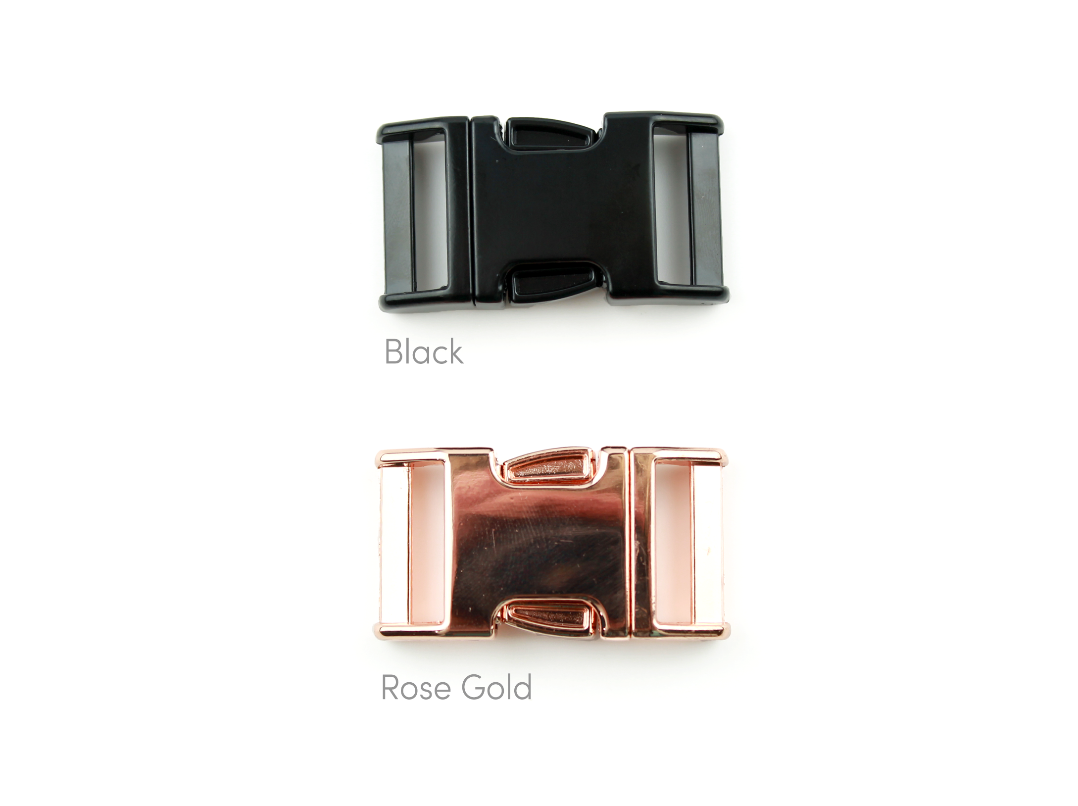 Available in Black and Rose Gold, these buckles are options for both large and small bead collars. (Metal Buckle available at size 11"+ for small collars)