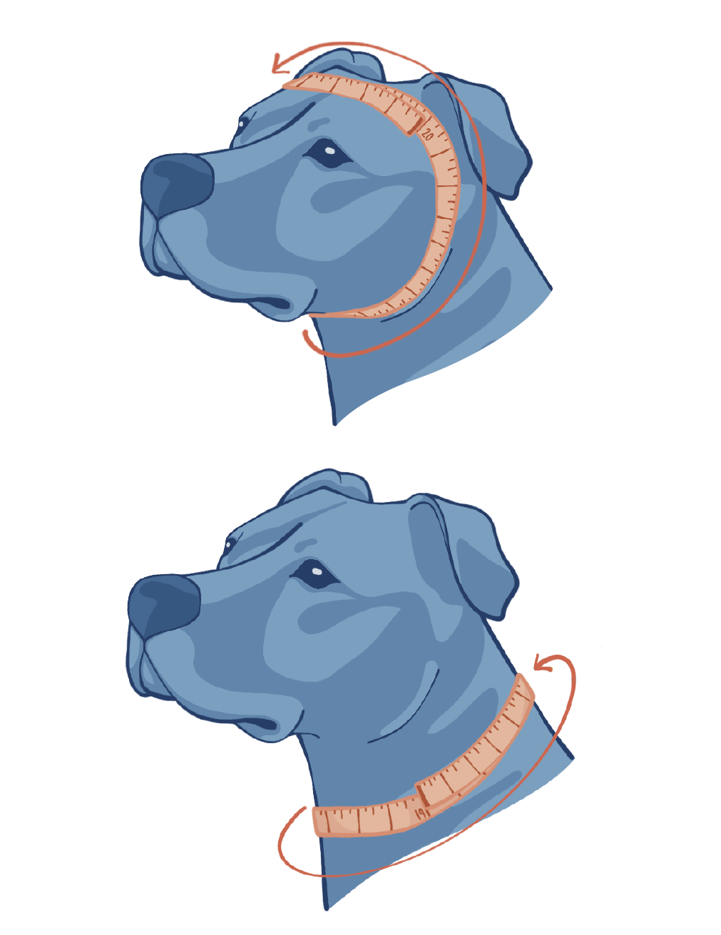1. Snugly measure around the widest part of your pet’s head, which is normally just in front of the ears and around the jaw.